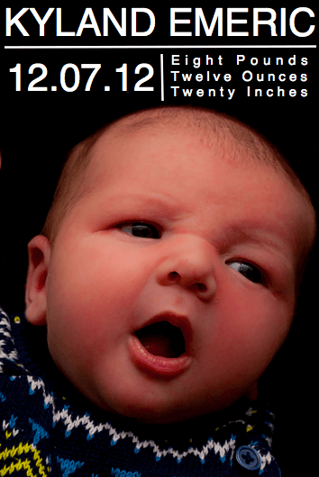 To celebrate the birth of my Son, I’m including 5 Birth announcement templates for Pages over the next couple of weeks. And yes, we used them all. This template uses a black back drop and a white text. It’s pretty unique in terms of its use of text.